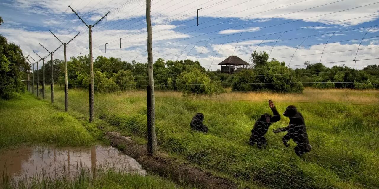 在低压电网保护下,几个黑猩猩缓步从远处走来。游客们只能在电网外面探望它们。感觉像是在动物园,但其实救助中心大得惊人,面积超过大约100万平方米,41只猩猩在十分接近大自然的环境中生存,所以“看见”黑猩猩算是运气。黑猩猩很害羞,探望过程中,应当噤声,切忌喧哗。